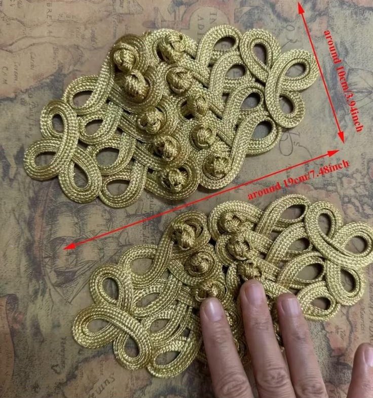 Utilisations : Ce brandebourg à coudre est idéal pour la fermeture de manteaux, vestes, capes, tuniques ou costumes. Il convient parfaitement aux créations inspirées des univers traditionnel, asiatique, historique, militaire ou ethnique. Il peut également être utilisé pour la customisation textile, le cosplay ou des projets de couture créative.